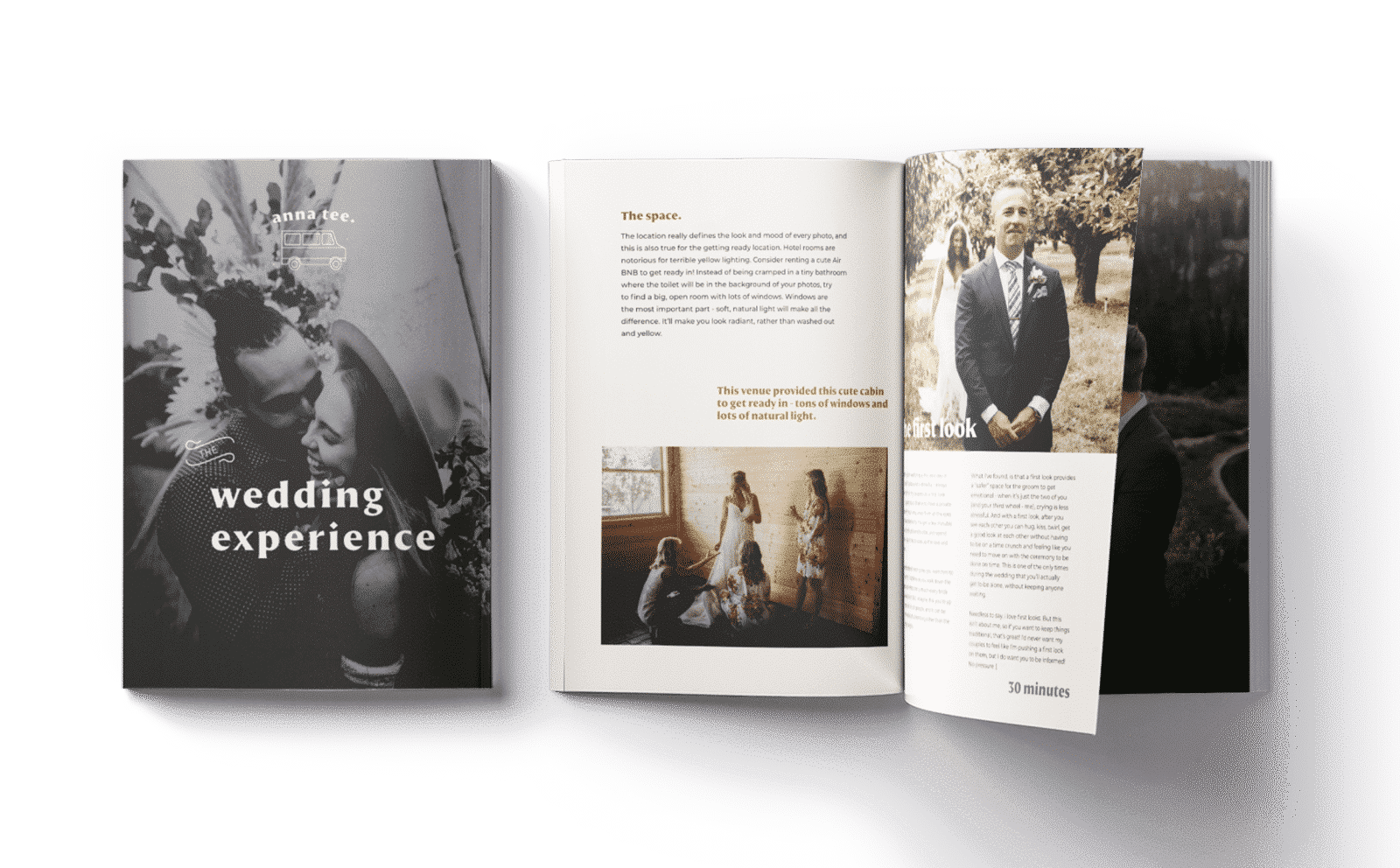 Cuốn cẩm nang đề cập đến mọi khâu trong ngày cưới (chụp ảnh chi tiết, chuẩn bị, chụp ảnh đầu tiên, cho đến tiệc cưới), bao gồm các mẹo về thời gian chụp ảnh, cách chụp ảnh đẹp nhất (ví dụ như mẹo chọn móc treo váy cưới bằng gỗ, hoặc chọn phòng có nhiều cửa sổ), và một số lời khuyên hữu ích cho việc lên kế hoạch!
